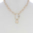 Imported LOCK CHARM OVAL LINK METAL NECKLACE Gold. Rhodium FBJ