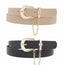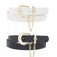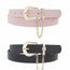 Imported RHINESTONE CIRCLE PAVE CHAIN LOOPED DUO BUCKLE BELT Black/Almond.Black/Blush.Black/Cognac.Black/White FBJ