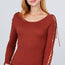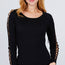 Imported S.M.L LONG SLEEVE W/STRAPPY DETAIL ROUND NECK RIB SWEATER TOP 70% Rayon 30% Polyester Black ACT