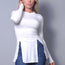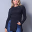 Made In U.S.A S.M.L SLEEK & CHIC FALL LONG SLEEVE SLITTED TOP 96% Rayon 4% Spandex Jet Black CEF