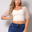 Made In U.S.A S.M.L Sweetheart neckline Puff half sleeves. Contrast mesh sleeves. Princess seam detail to contour the bust. Medium stretch for ultimate comfort 62% Viscose 33% Nylon 5% Spandex Nude CEF Polka Dot Mesh Puff Sleeve Contrast Fashion Top