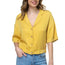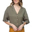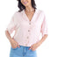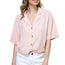 Imported S.M.L. A woven tencel boxy shirt, solid color, featuring front notched lapels, a v-neckline, front button down, short cuffed dolman sleeves, dropped shoulders, and a cropped hem. 100% Tencel Blush IRI