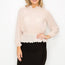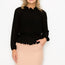 Imported S.M.L A woven top featuring a solid color, pleats, ruffles, a mock neckline, long sleeves, a peplum waist, and a back keyhole closure 100% Polyester Oyster IRI