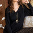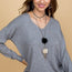 V Neck 3/4 Sleeve Side Slit HI-LO Sweater