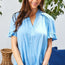 Imported S.M.L Ruffle Mock Notched Neck Short Sleeve Solid Top 100% Rayon Peach Pink MAI