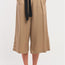 Beige, solid, high waist with belt loops and black detachable self-tie ribbon-belt detail, side zipper closure, two front pockets, two back decorative pockets, flare wide leg, capri length, non-stretch, regular fit, casual, cute, business casual, fall palette, stylish, trending shade, fall/winter collection