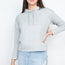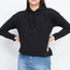 Imported S.M.L A knit sweater featuring a solid color, a back hoodie with front self-tie drawstrings, and a cuffed long sleeves. 90% Polyester 10% Spandex Black IRI