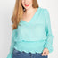 Imported 1XL.2XL.3XL A sheer woven top featuring an allover Swiss polka dot print, a V neckline, long sleeves with elasticized cuffs, shirred shoulders, and a smocked waist. 100% Polyester Mint IRI