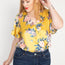 Imported 1XL.2XL.3XL A satin woven bodysuit featuring an allover floral print, a V neckline with snap-button closure, short butterfly sleeves, a front wrap, and snap-button closures. 100% Polyester Ivory IRI