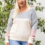 Imported1XL.2XL.3XLOpen Back Twisted Color block Print Long Sleeve Boat Neck Sweater Top100% Acrylic Grey/Mauve/White MAI