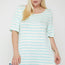 Made In U.S.A 1XL.2XL.3XL Striped tunic, featuring flattering flared sleeves, a round neck, and a relaxed fit. 33% Rayon 63% Polyester 4% Spandex Mint POL