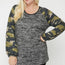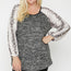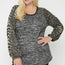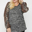 Made In U.S.A 1XL.2XL.3XL Two tone color top featuring cheetah print long bubble sleeves and a round neck. 33% Rayon 63% Polyester 4% Spandex Charcoal/Brown Cheetah POL