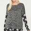 Made In U.S.A 1XL.2XL.3XL Elephant sublimation print top featuring long sleeves, a round neck, and an asymmetric hem. 33% Rayon 63% Polyester 4% Spandex Charcoal/Grey POL