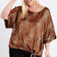 Made In U.S.A 1XL.2XL.3XL SHORT SLEEVE SIDE KNOT HEMLINE LEOPARD PRINT WOVEN TOP 100% Polyester Orange/Purple RKA