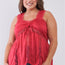 Imported 1XL.2XL.3XL sleeveless, lace trim, lace cut-in details, gathered front with self-tie drawstring, smocked back, unlined, casual, cute, spring/summer collection 100% Viscos Fuchsia TSH