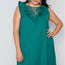 Imported 1XL.2XL.3XL sleeveless, double lace insert "V" plunge, ruffle detail at chest, lined, keyholes back, button back closure, mini length. 100% Polyester Green TSH