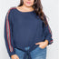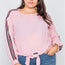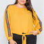 Imported 1XL.2XL.3XL Plus size color block sleeve front knot semi-sheer top 100% Polyester Mustard TSH