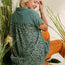 Imported XL.1XL.2XL Linen Blend Short Folded Sleeve Dalmatian Print Collared Button Front Top with Frayed Hem 57% Lynen 43% Viscose Lagoon UMG