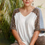 Imported XL.1XL.2XL Linen Blend Animal Print See Through V-Neck Colorblock Top with Side Slits 57% Lynen 43% Viscose Off White UMG