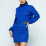 Made In U.S.A S.M.L Brushed knit mock neck drop shoulder top with front pocket mini skirt set 80% Rayon 15% Polyester 5% Spandex Royal Blue BEL