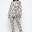 Made In U.S.AS.M.LBrushed Animal Long Sleeve Loose Top w Sweatpants Set 50% Rayon 28% Polyester 22% NylonIvory BEL