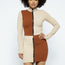 Rib Color Block Mock Neck Long Sleeve High-waist Mini Skirt With Front Zipper Set