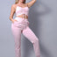 Imported S.M.L Front ruching crop tank top & joggers sweat set 100% Polyester Black CEF