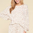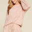 Made In U.S.A S.M.L Leopard printed knit loungewear set featuring long sleeves top and shorts with drawstrings and side pockets. 95 % Polyester 5% Spandex Light Grey ODD