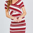 Short Sleeve V-neck W/cross Wrap Multi Stripe Sweater Dress