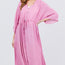 Elbow Sleeve Waist Ribbon Tie Button Down Long Woven Cardigan