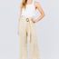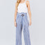 Imported S.M.L STRAIGHT NECK WAIST BELTED STRIPE LONG JUMPSUIT 100% Rayon Blue/Off White ACT