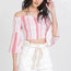 STRIPED OFF-THE-SHOULDER GAUZE CROP TOP WITH BODICE SMOCKING AND FLOUNCE SLEEVES