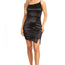 Imported S.M.L Solid mini dress with bodycon fit, side slit, and spaghetti straps 95% Polyester 5% Spandex Black TRA