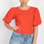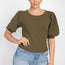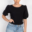 Imported S.M.L A knit shirt featuring techno crepe fabric, a solid color, balloon short sleeves, a round neckline, and a back keyhole closure. 95% Polyester 5% Spandex Black IRI