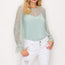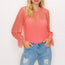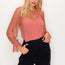 Imported S.M.L A knit bodysuit featuring all over shadow stripes, lace trim, long sleeves, a round neckline, and a back slit. 100% Nylon Coral IRI