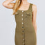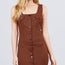 Sleeveless Deep Square Neck Button Down Detail Mini Woven Dress.