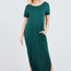 Imported S.M.L.XLSHORT DOLMAN SLEEVE DOUBLE V-NECK w/SIDE POCKET RAYON SPANDEX SIDE SLIT MAXI DRESS95% Rayon 5% SpandexDeep GreenACT