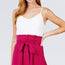 V-NECK W/BELTED TIE HIGH WAIST CAMI WOVEN ROMPER