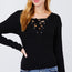 Imported S.M.L V-NECK EYELET STRAP BACK SWEATER 80% Acrylic 20% Polyester Black ACT