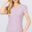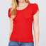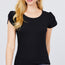 Imported S.M.L SHORT TULIP PUFF SLEEVE ROUND NECK RIB KNIT TOP 75% Polyester 19% Rayon 6% Spandex Black ACT