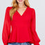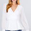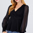 Imported S.M.L LONG ORGANZA PUFF SLEEVE V-NECK SURPLICE WITH SELF TIE KNIT PEPLUM TOP 100% Polyester Black ACT