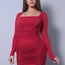 Sexy & Chic Long Sleeve Square Neck Ruching Tie Basic Dress