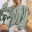 Made In U.S.A S.M.L Draped Ruffle Longsleeve Top 65% Rayon 30% Polyester 5% Spandex Sage CYF