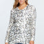 ImportedS.M.L.WILD LEOPARD ANIMAL PRINT ASYMMETRICAL HEM COZY KNIT PULLOVER SWEATER.95% Polyester 5% Spandex Off White DAV