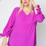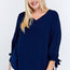 Imported 1XL.2XL.3XL SOLID V-NECK 3/4 SLEEVE TIE ACCENT BLOUSE TOP 100% Polyester Navy DAV