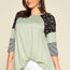Made In U.S.A1XL.2XL.3XLPlus Size Floral and Striped Color Block Sleeves Tunic Top with Side Twist95% Rayon 5% SpandexSageEME