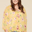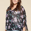 Made In U.S.A 1XL.2XL.3XL Plus size floral chiffon sheer surplice top featuring draped cross-front design with dolman, bell sleeves and elastic hem. (Layering garments not included.) 100% Polyester Black EME