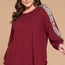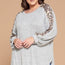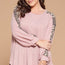 Made In U.S.A 1XL.2XL.3XL Plus Size Solid Hacci Brush Tunic Top with Animal French Terry Contrast Balloon Sleeves with Cuff Detail, Curved Hem 95% Polyester 5% Spandex Blush EME