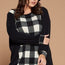 Made In U.S.A 1XL.2XL.3XL Plus Size Buffalo Plaid Check Contrast Pullover Tunic Top with Cuff Detail and Relaxed Fit 96% Polyester 4% Spandex Ivory/Black EME