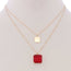 Imported 2 LAYERED SQUARE PENDANT NECKLACE Pink.Brown.Clear.Red.Turquoise FBJ
